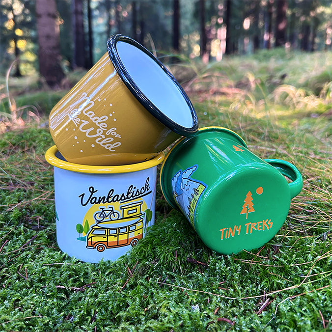 Ob am Lagerfeuer, auf Wandertour oder beim Frühstück im Garten – unsere Emaille Tassen sind leicht, unzerbrechlich und bereit für jedes Abenteuer. Die ideale Camping Tasse, mit der jeder Schluck nach Freiheit schmeckt.